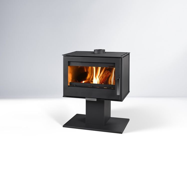 Камин оснащен системой двойного дожига, которая обеспечивает полное сгорание топлива и снижает вредные выбросы в атмосферу. Заднее подключение дымохода диаметром 150 мм упрощает монтаж и позволяет оптимально использовать пространство помещения. Номинальная мощность 6,7 кВт обеспечивает эффективный обогрев площади до 59 м².
