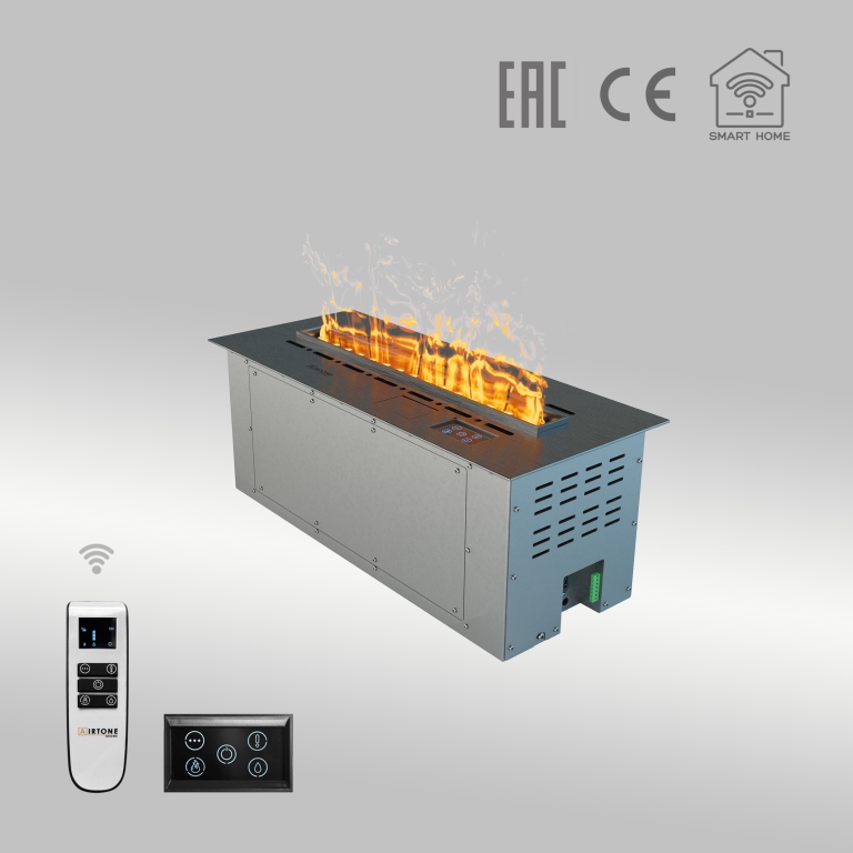 Камин оснащен интеллектуальной системой управления, включающей сенсорную панель, пульт дистанционного управления и возможность интеграции в систему умного дома. Три уровня регулировки интенсивности пламени позволяют настроить яркость огня в соответствии с вашими предпочтениями и освещенностью помещения.