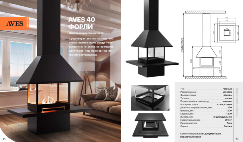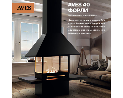 Островной камин Aves 40 Форли - это премиальное решение для создания уютной атмосферы в центре помещения. Модель отличается современным дизайном и продуманной конструкцией, позволяющей наслаждаться видом живого огня с любого ракурса.