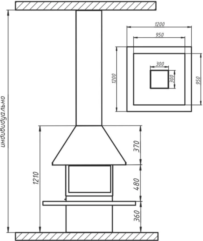 Камин выполнен из высококачественной стали черного цвета, что обеспечивает ему стильный внешний вид и долговечность. Четыре прямых стекла образуют панорамную зону обзора, превращая камин в настоящий арт-объект. Верхнее подключение к дымоходу диаметром 250 мм обеспечивает эффективный отвод дымовых газов.