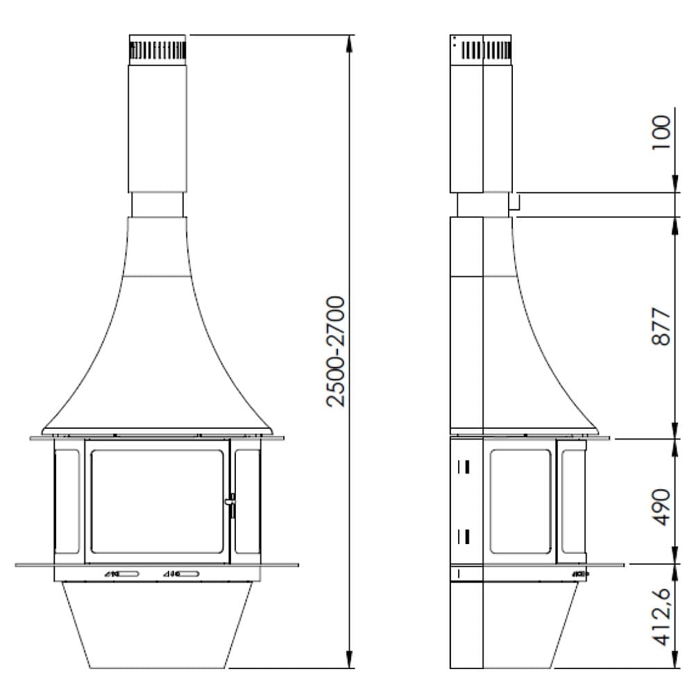 Камин подвесной пристенный с панорамным остеклением и дровяным отоплением Traforart Lorena Frontal