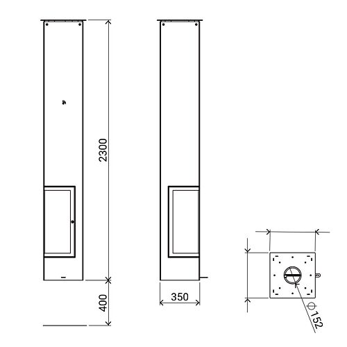 Камин оснащен системой вторичного дожига газов, что обеспечивает не только высокую эффективность работы, но и экологичность. Черный цвет корпуса гармонично вписывается в различные цветовые схемы интерьеров, а квадратная форма придает изделию современный и лаконичный вид.
