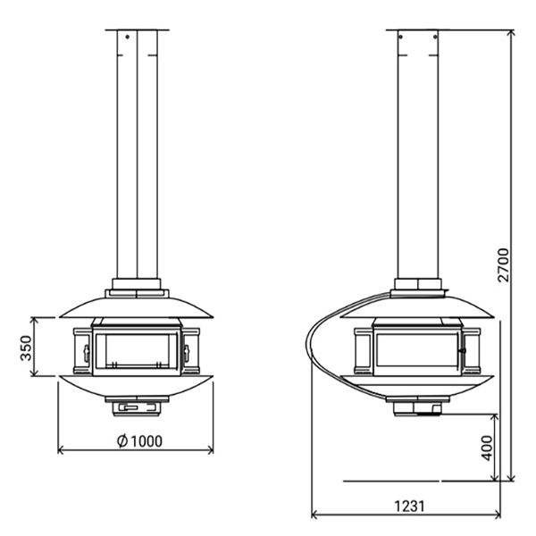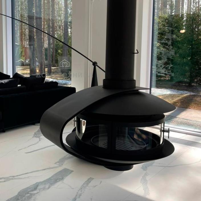 Камин подвесной центральный со стеклом круглой формы и панорамным обзором Traforart Fancy Central