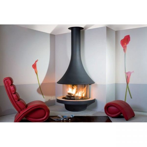 Камин пристенный подвесной с панорамным стеклом и дровяным отоплением Bordelet Eva 992