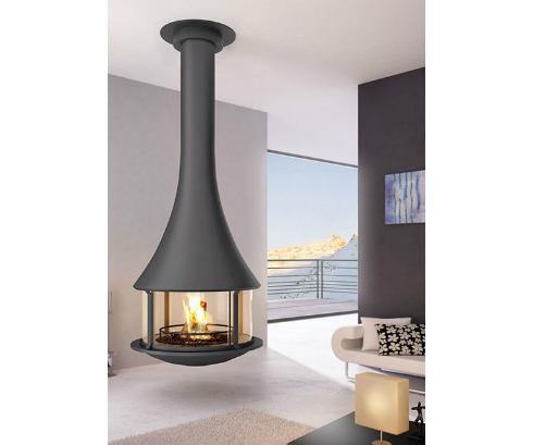 Камин пристенный со стеклом панорамным обзором и подвесной конструкцией Bordelet Zelia 908