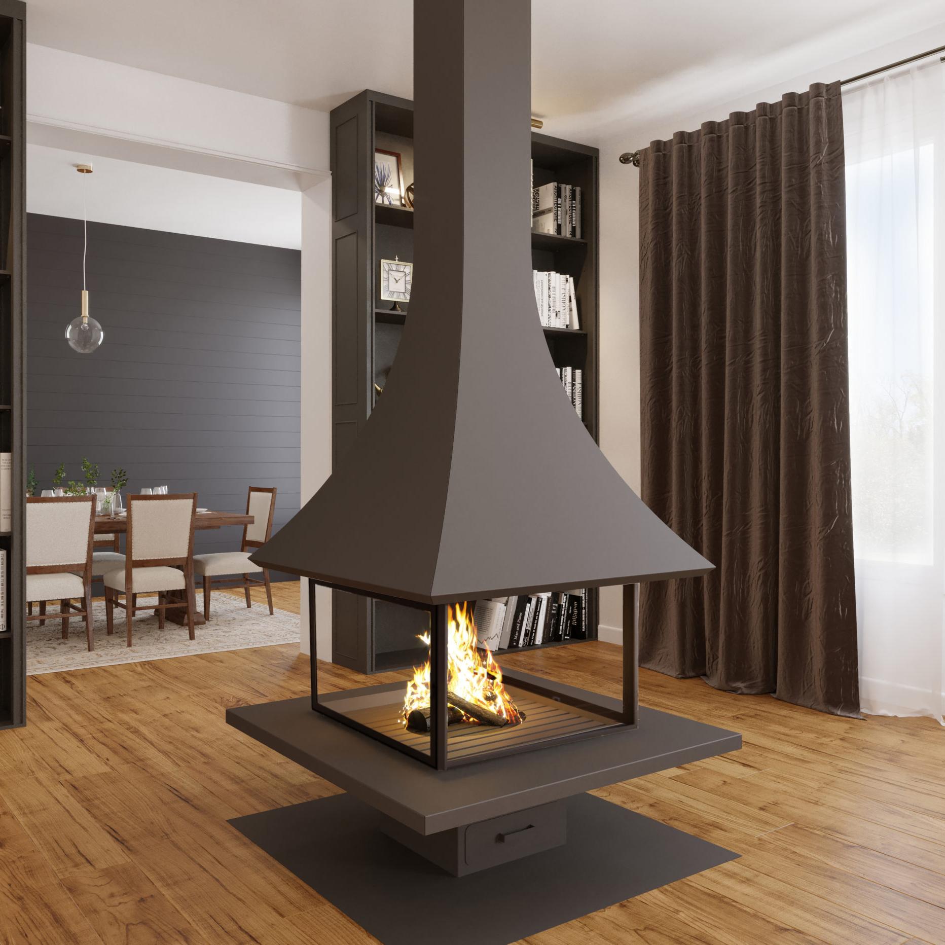 Камин центральный островной JC Bordelet Julietta 985 со стеклом панорамным и дровяным отоплением
