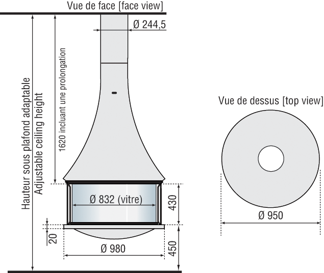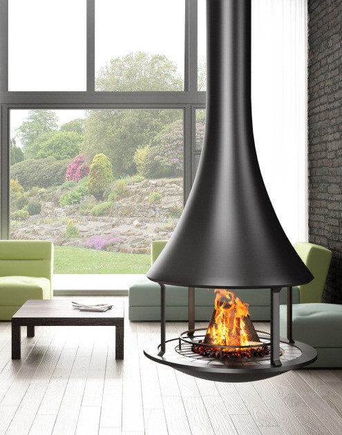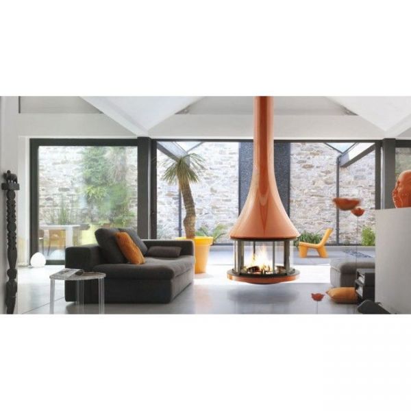 Камин центральный подвесной с панорамным стеклом и дровяным отоплением Bordelet Zelia 908