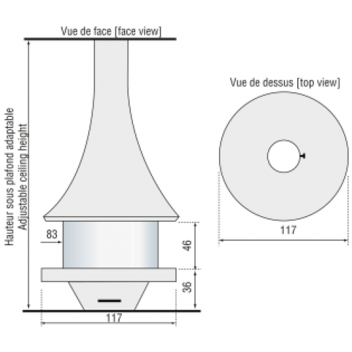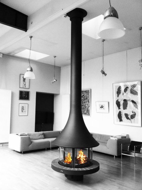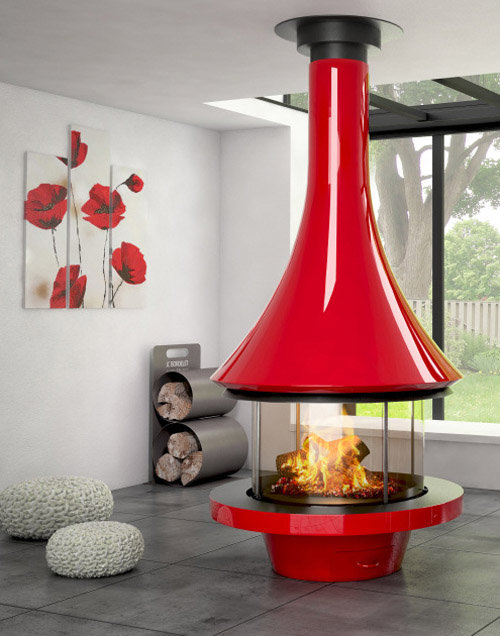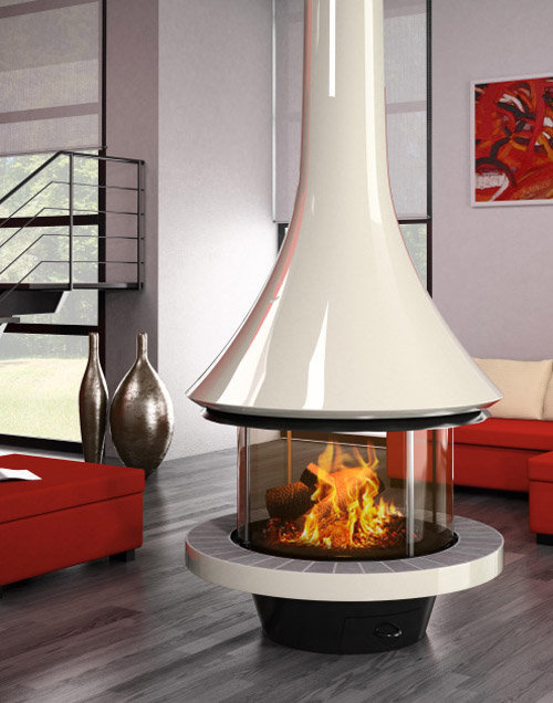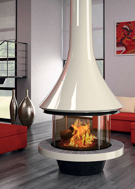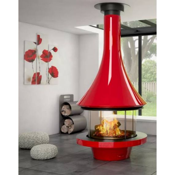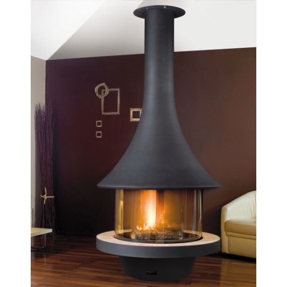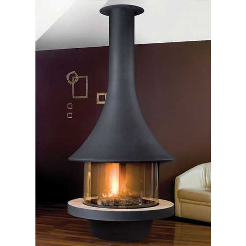 Камин центральный подвесной с панорамным стеклом и округлой формой Bordelet Eva 992
