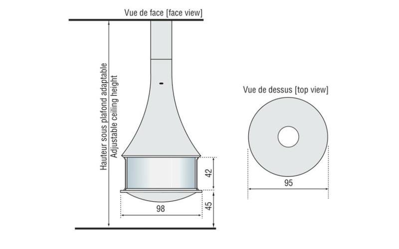 Камин центральный подвесной со стеклом панорамным и дровяным отоплением Bordelet Zelia 908