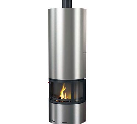 Камин центральный со стеклом из нержавеющей стали с панорамным обзором и двойным дожигом газов Traforart Diamante