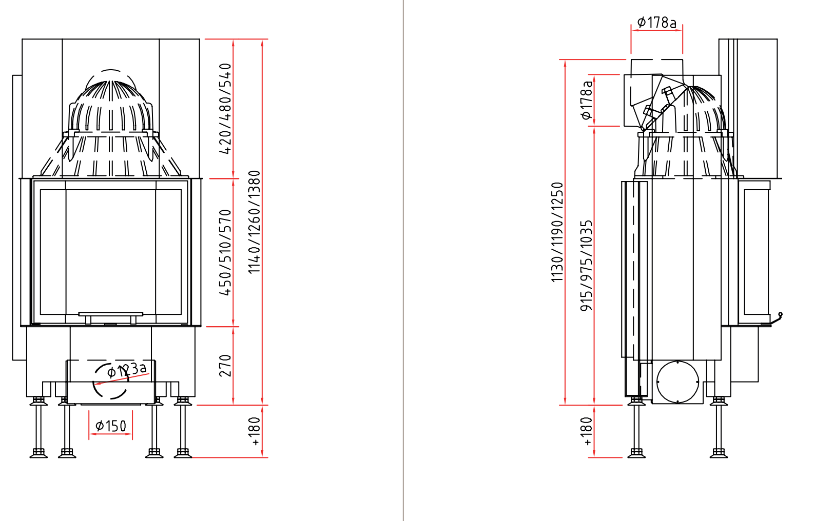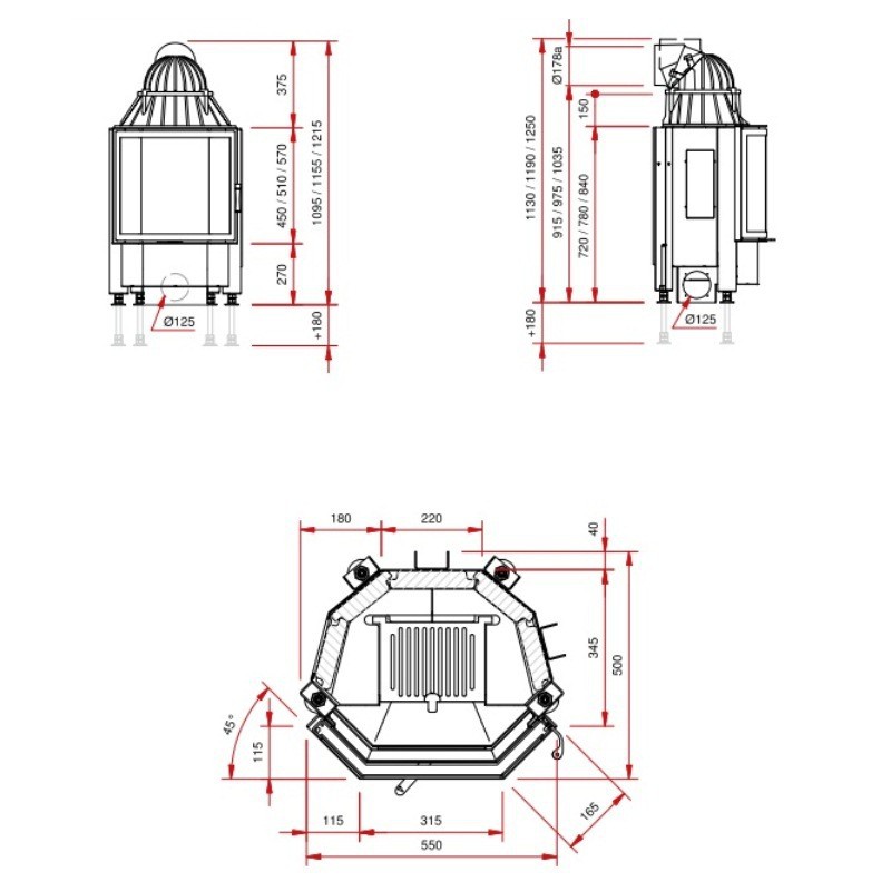 Панорамное призматическое стекло позволяет наслаждаться видом живого пламени со всех углов комнаты. Вторичный дожиг воздуха обеспечивает полное сгорание топлива, снижая расход дров до 0,8 кг/ч и минимизируя вредные выбросы. Регулируемые ножки высотой от 170 до 300 мм упрощают монтаж и подключение к дымоходу.