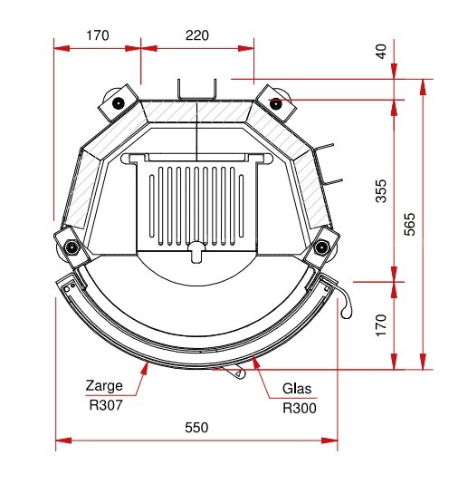 Каминная топка с полукруглым стеклом и системой очистки Schmid Ronda 5557
