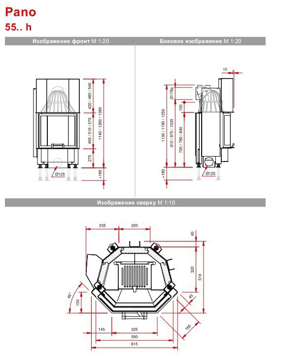 Каминная топка с призматическим стеклом и верхним подъемом дверцы Schmid Pano 5557h антрацит