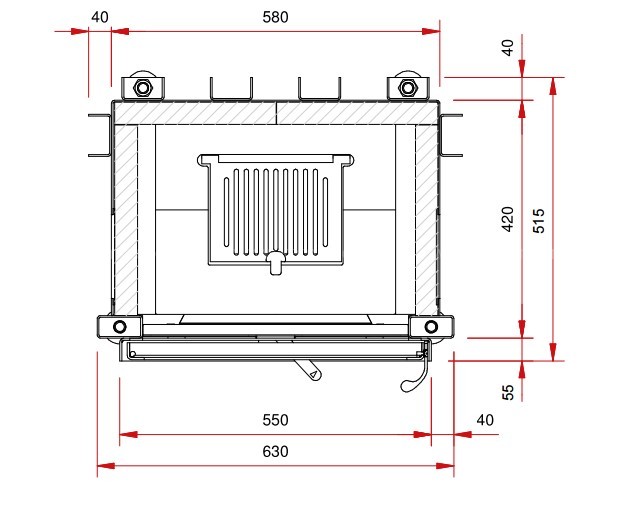 Каминная топка с прямым стеклом и боковым открыванием дверцы Schmid Lina 5557