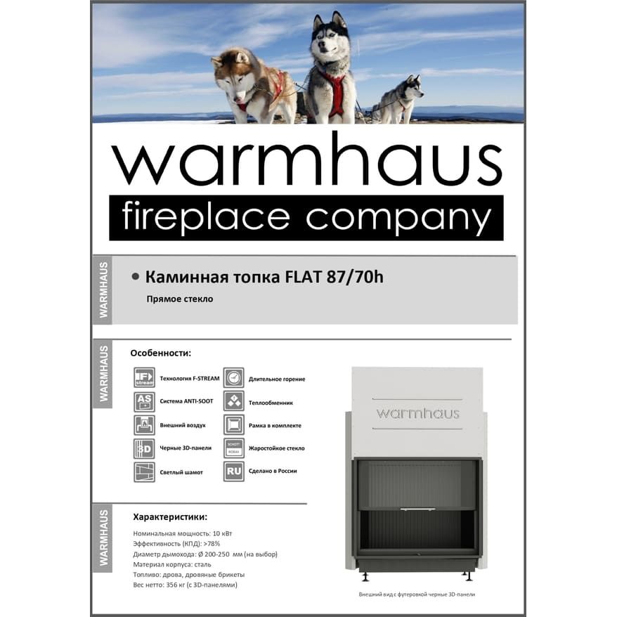 Топка Warmhaus FLAT 87/70h создана для тех, кто ищет надежное и стильное решение для отопления загородного дома. Сделанная в России с применением качественных материалов, эта топка сочетает в себе передовые технологии и продуманный дизайн.