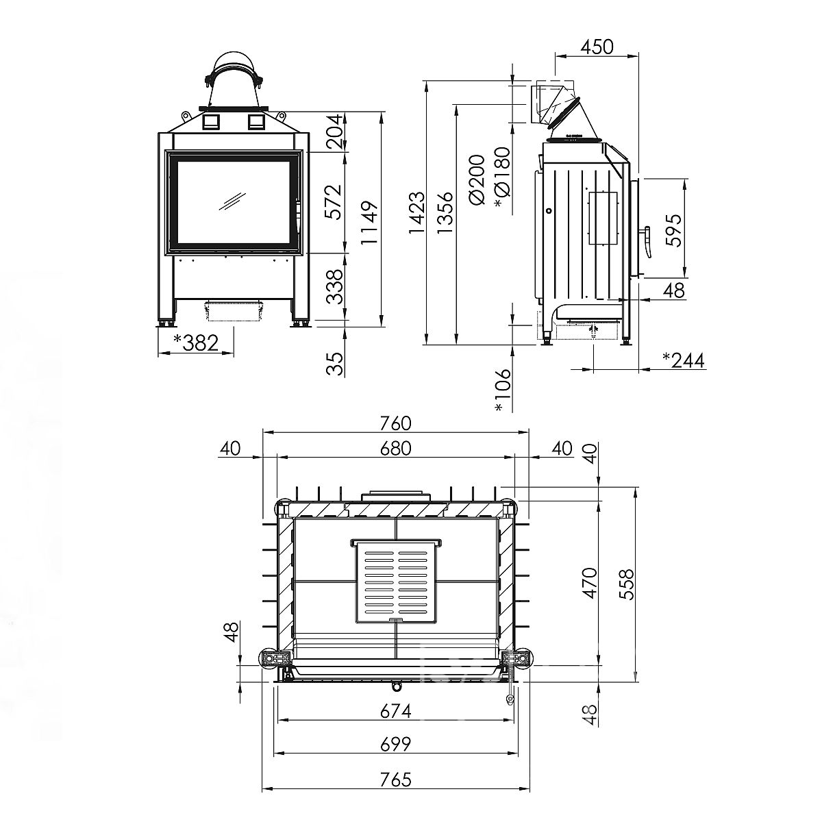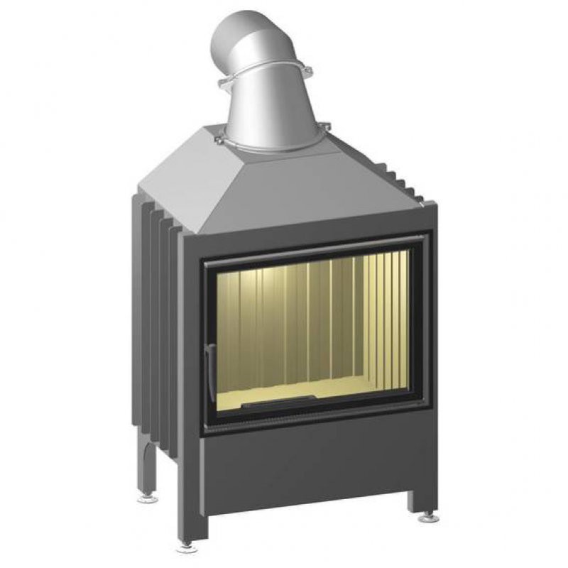 Конструкция топки отличается герметичностью корпуса, достигаемой отсутствием винтовых и шурупных креплений. Возможность подключения подачи воздуха на горение извне позволяет повысить эффективность работы системы. Механизм фиксации дверцы обеспечивает удобство при закладке дров и чистке стекла.