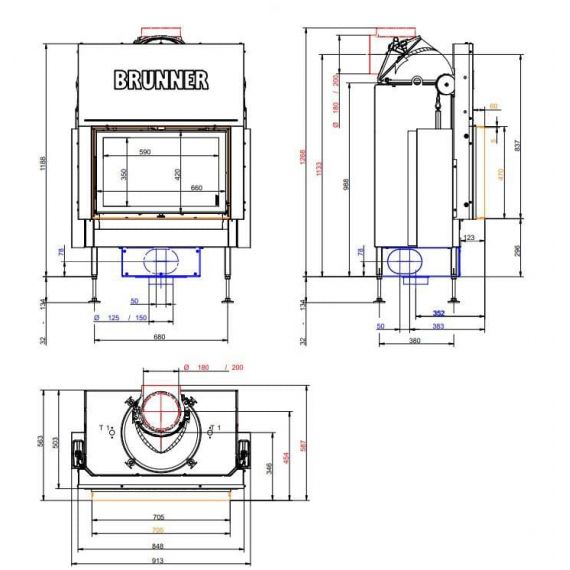 Каминная топка стальная с подъемной дверцей и системой чистого стекла Brunner BKH Flat 42-66 ST