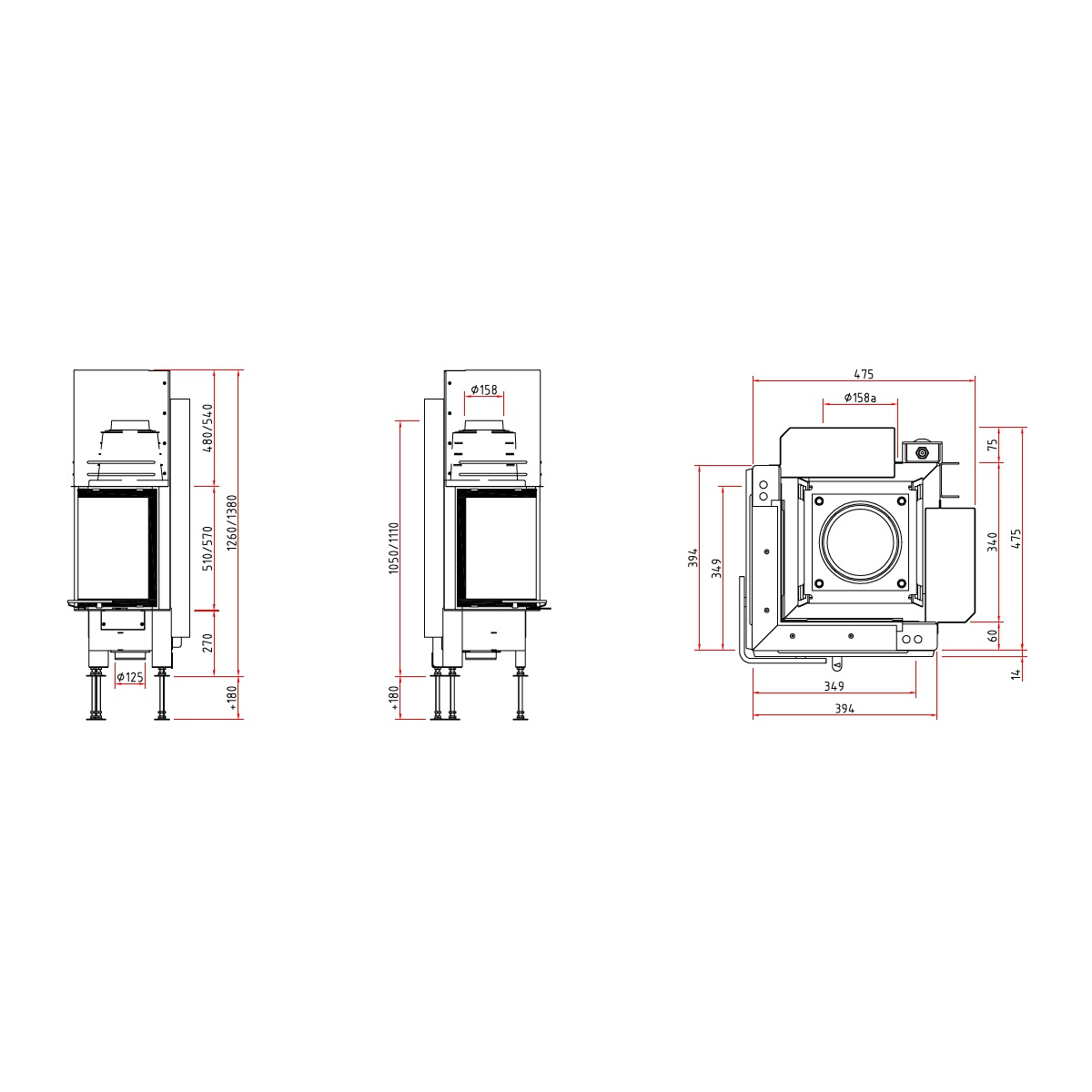 Каминная топка стальная с угловым стеклом и боковым открыванием Schmid Ekko 34(34)51h