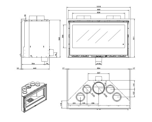 Особенностью данной топки является реверсивная дверца с боковым открыванием, которая может быть установлена в соответствии с планировкой помещения. Прямое стекло большого размера обеспечивает максимальный обзор пламени, создавая неповторимую атмосферу живого огня.