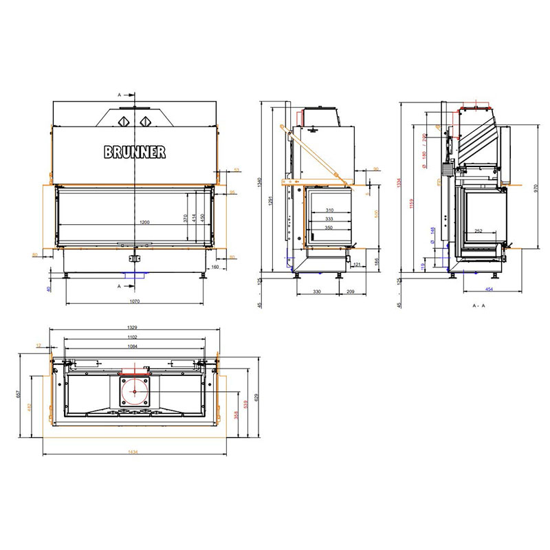 Каминная топка трехсторонняя с панорамным обзором огня и системой дожига газов Brunner BKH Panorama 45-35-120-35 ST