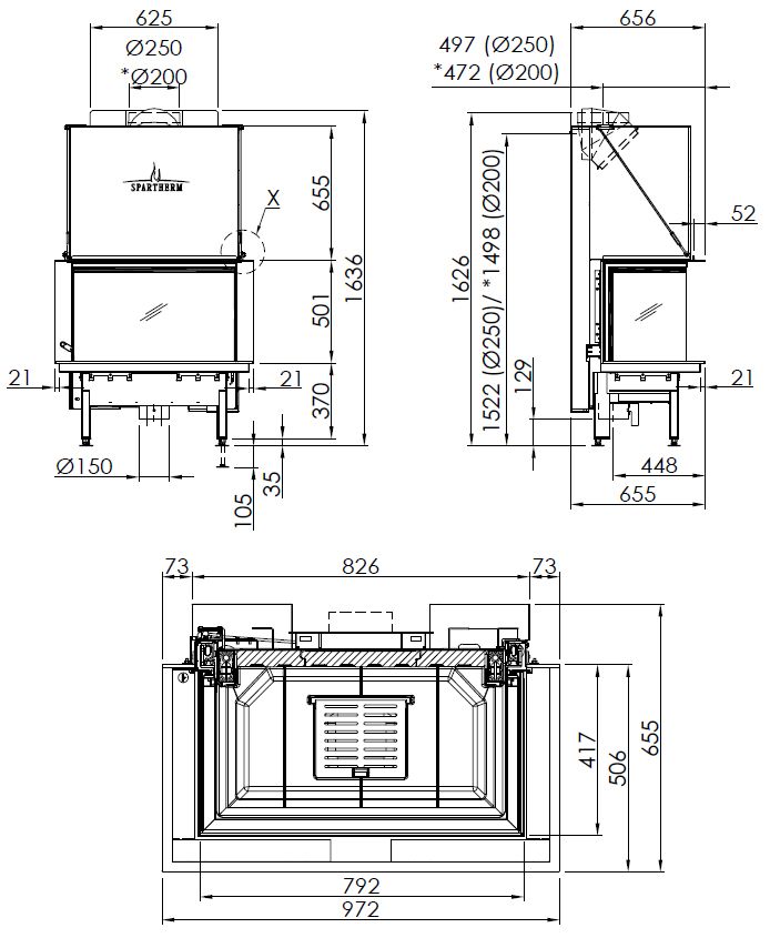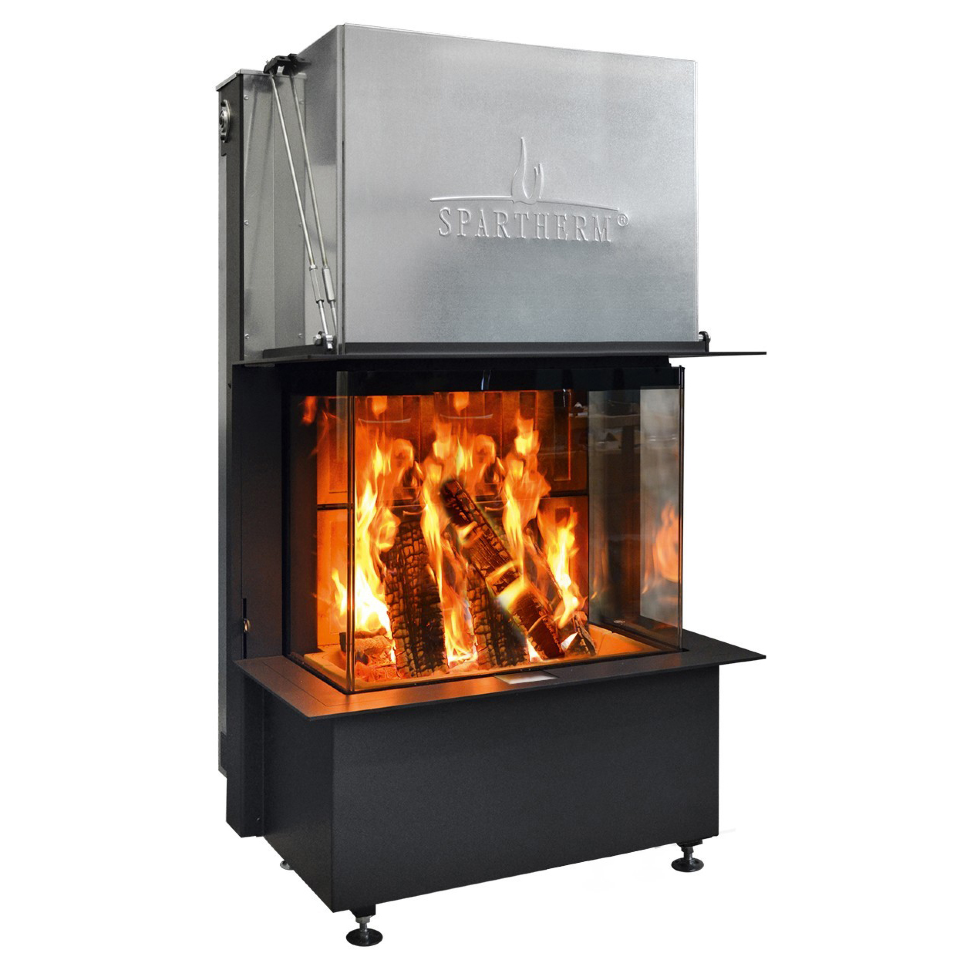 Каминная топка трехсторонняя с подъемной дверцей и системой чистого стекла Spartherm Premium A-3RL80h
