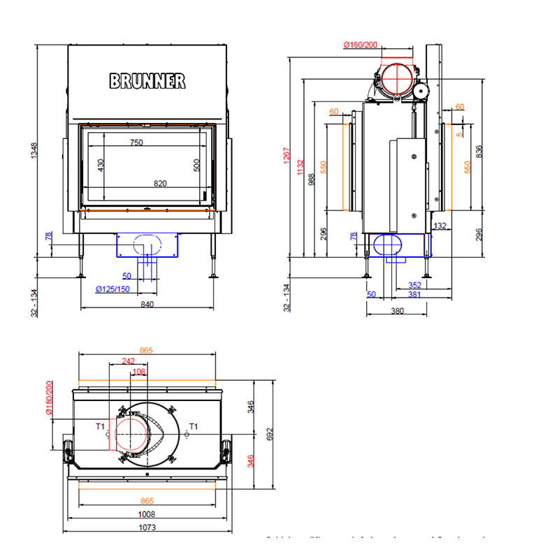 Каминная топка туннельная двухсторонняя с двойным дожигом и системой чистого стекла Brunner BKH Tunnel 50-82 ST-KT