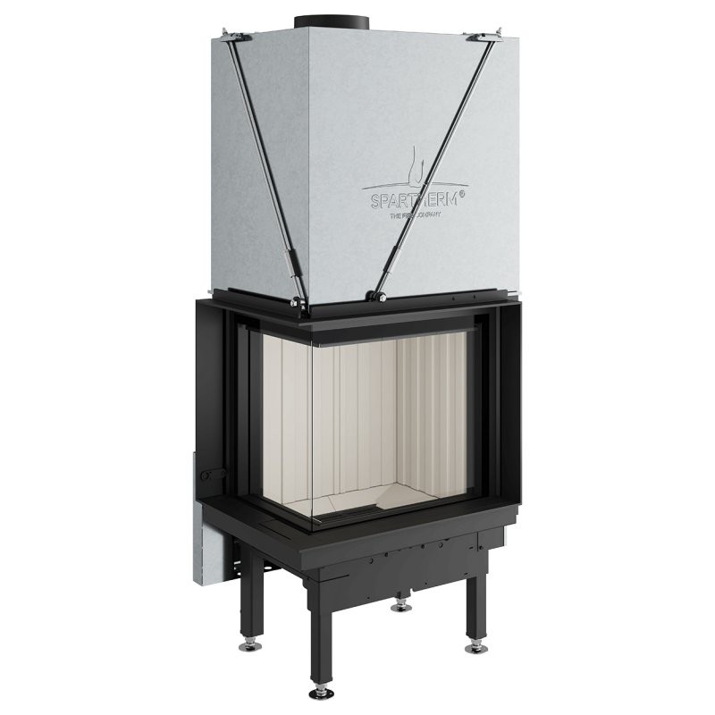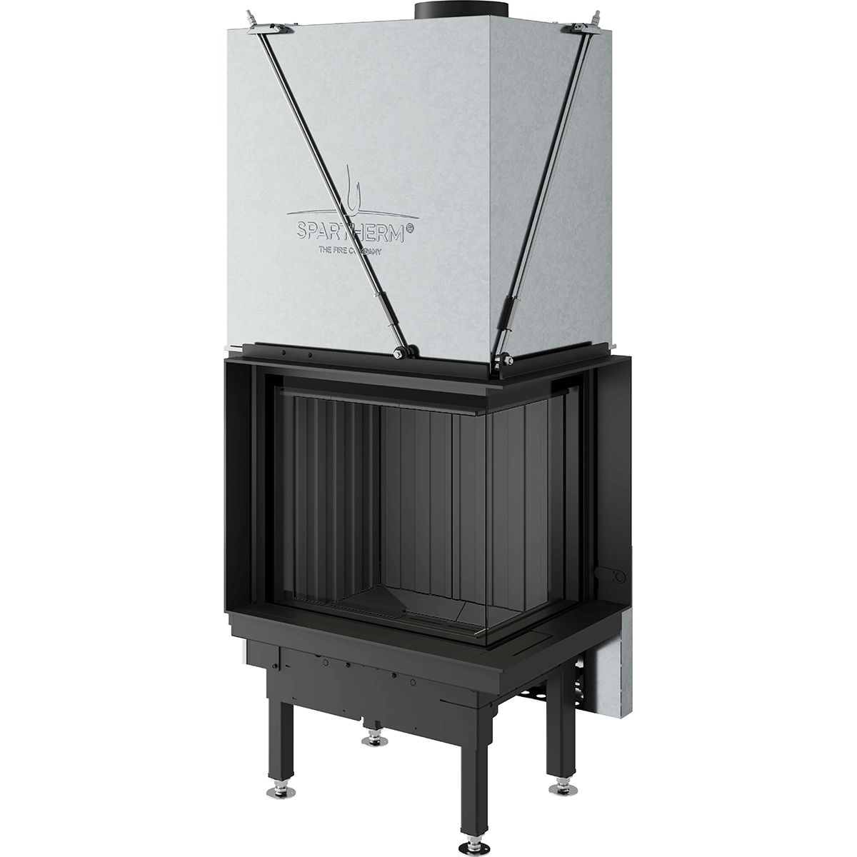 Каминная топка угловая с Г-образным стеклом и вертикальным подъемом дверцы Spartherm Premium V-2R-55h
