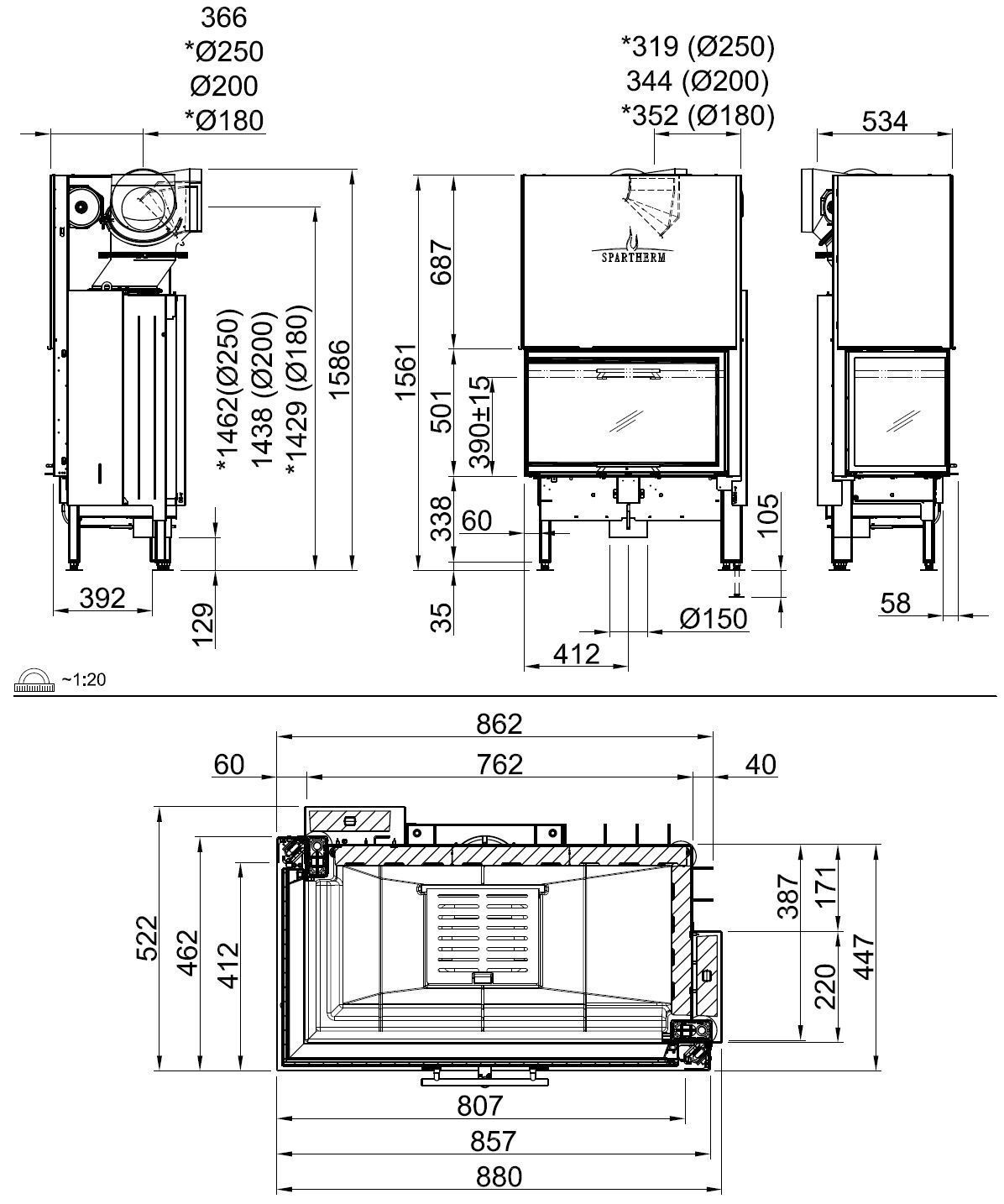 Каминная топка угловая с левым остеклением и системой чистого стекла Spartherm Varia 2L80h Linear 4S
