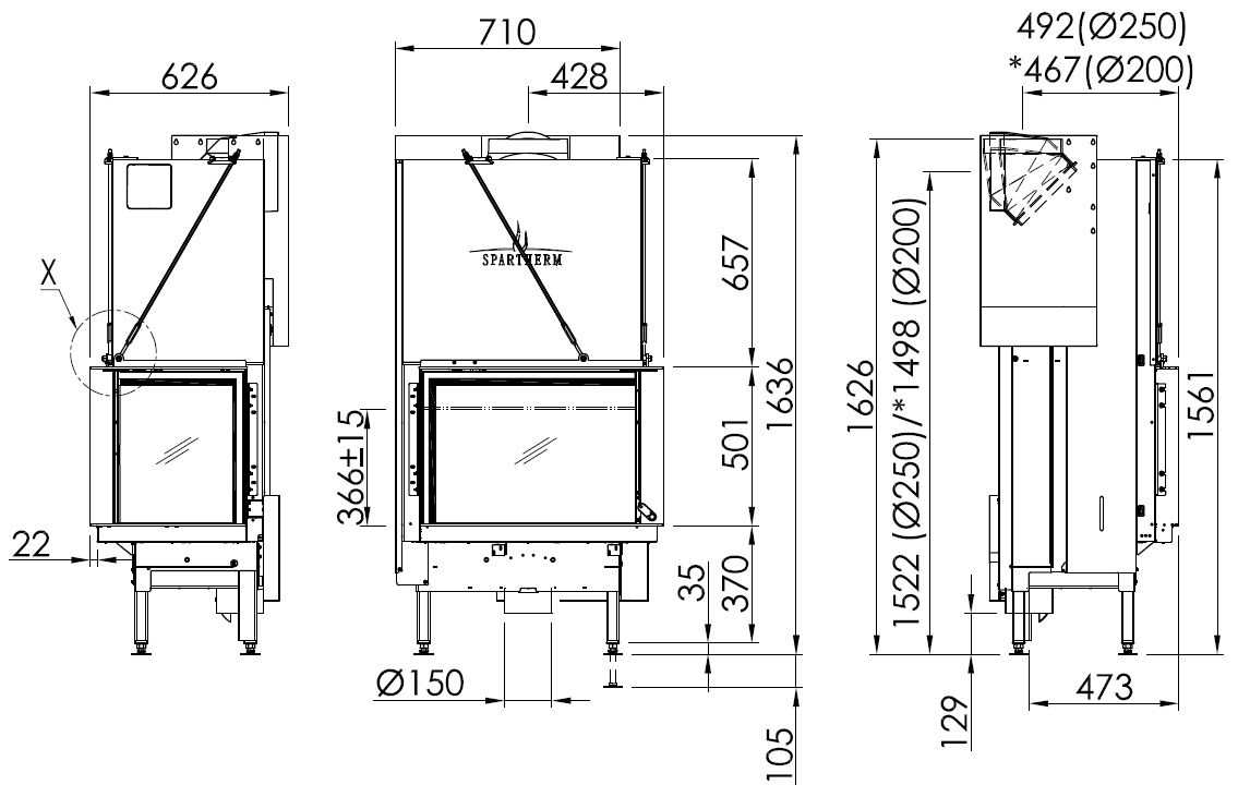Угловая каминная топка Spartherm Premium V-2R-68h - это инженерное совершенство от немецкого производителя, предназначенное для тех, кто ищет надежное и эффективное решение для отопления. Модель отличается высоким КПД 80% и регулируемой мощностью от 6.7 до 12.5 кВт, что позволяет оптимально использовать топливо в различных условиях эксплуатации.