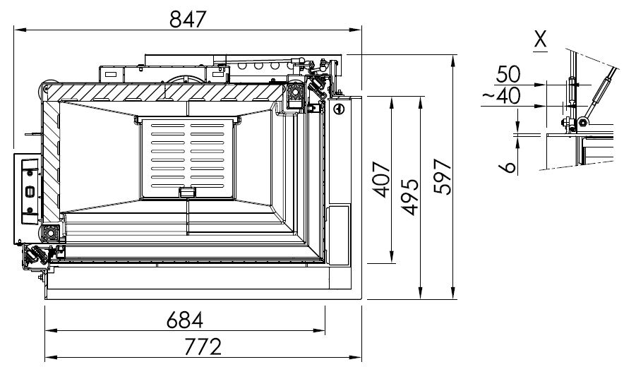 Конструкция топки включает несколько ключевых преимуществ: Г-образное угловое стекло обеспечивает панорамный обзор пламени с двух сторон, создавая эффект присутствия у настоящего камина. Механизм фиксации дверцы облегчает процесс закладки дров и обслуживания. Система чистого стекла работает автоматически, поддерживая идеальную прозрачность на протяжении всего времени горения.