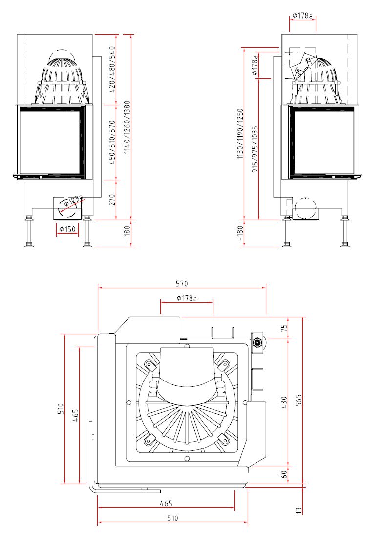 Каминная топка закрытая с Г-образным стеклом и боковым открытием Schmid Ekko 45(45)57
