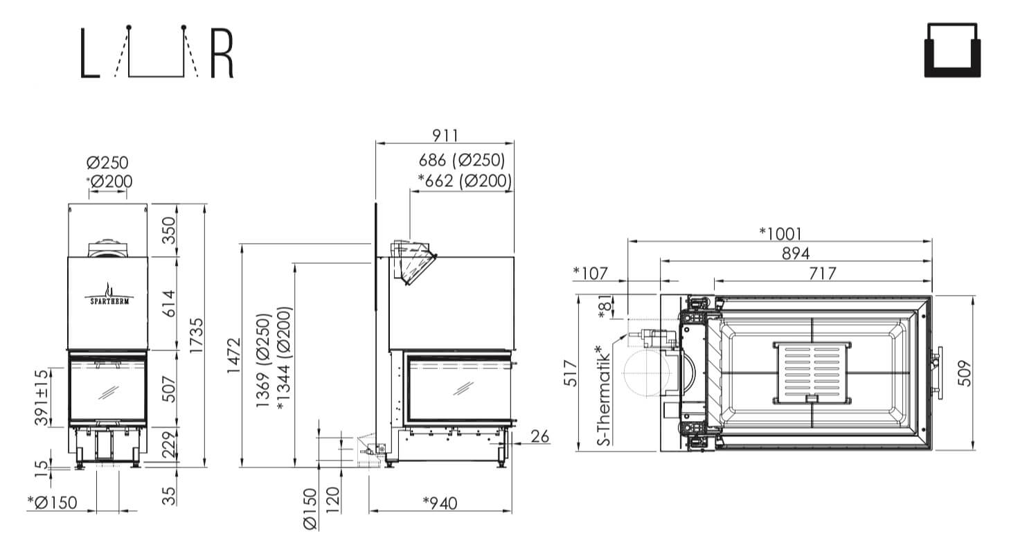 Каминная топка закрытая с трехсторонним стеклом и подъемной дверцей Spartherm Arte U70H Linear 4S
