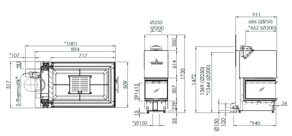 Каминная топка закрытая с трехсторонним стеклом и подъемной дверцей Spartherm Linear 4S Arte U70H