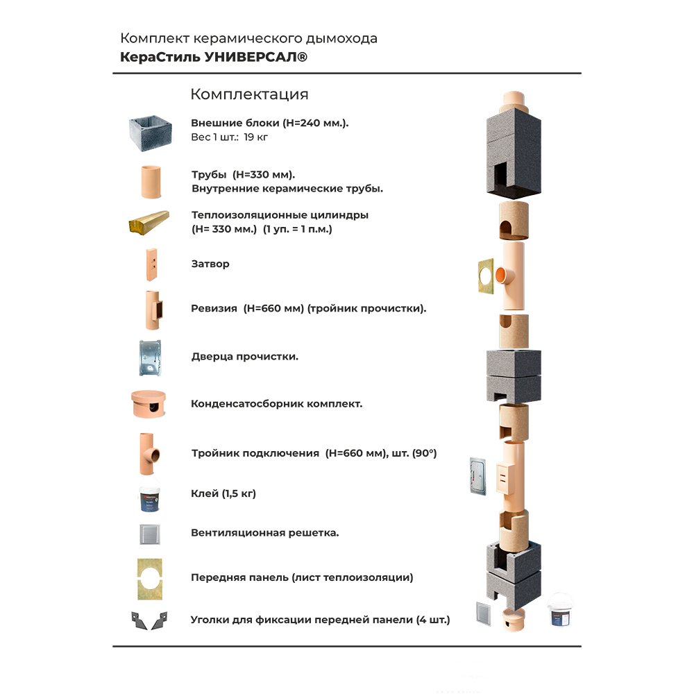 Керамический дымоход КераСтиль Универсал с диаметром 180 мм и высотой 12 метров представляет собой инновационное решение для организации системы дымоудаления. Конструкция с верхним комплектом тип 1 обеспечивает максимальную защиту от внешних факторов и простоту монтажа.