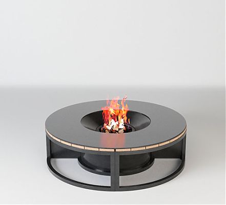 Ландшафтный камин круглый черный для сада на дровах Traforart ROUND