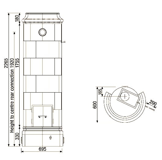 Конструкция печи предусматривает пристенное расположение, что делает ее универсальным решением для различных помещений. Чугунная топка обеспечивает долговечность и устойчивость к высоким температурам, а система конвекции способствует равномерному распределению тепла. Боковое открывание дверцы с термостойким стеклом обеспечивает удобство эксплуатации и безопасность.