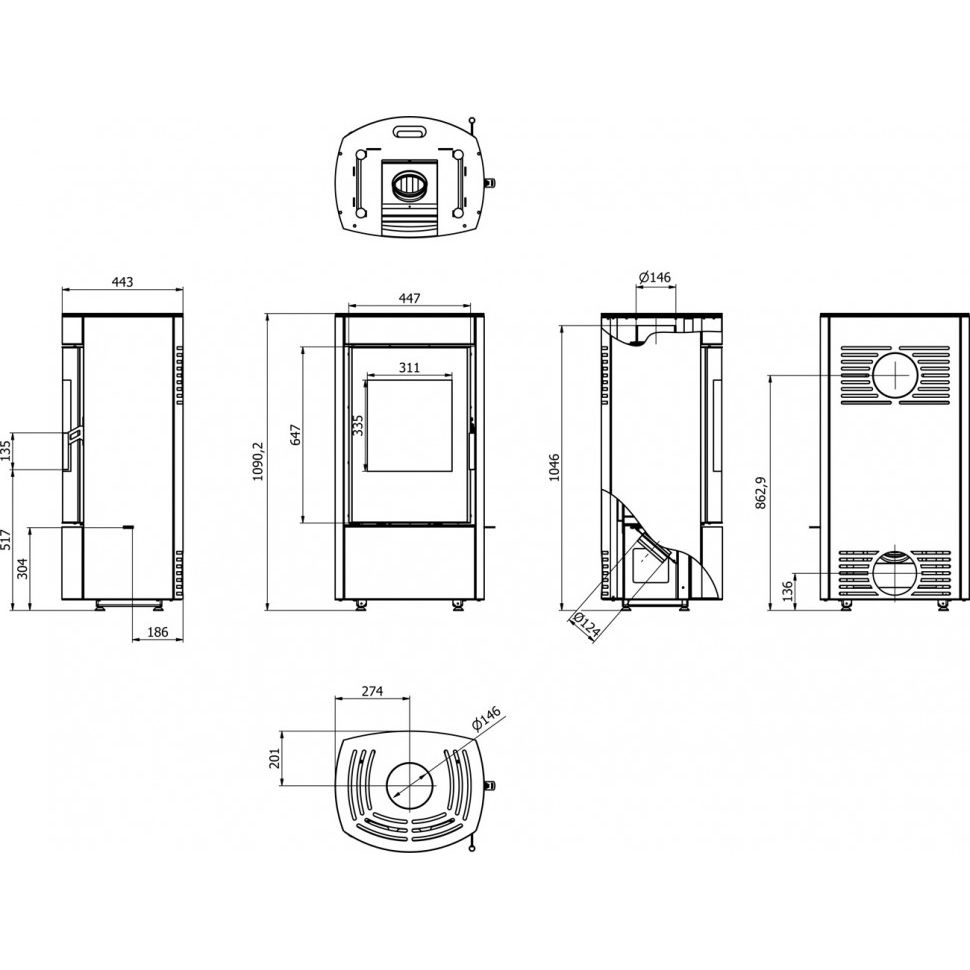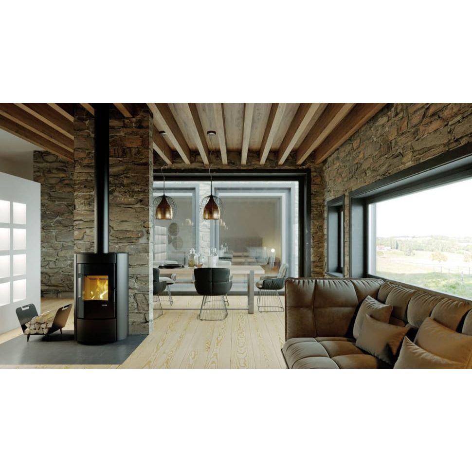 Печь оснащена системой конвекционного нагрева, что способствует равномерному распределению тепла по помещению. Возможность подключения центральной подачи воздуха сзади или снизу расширяет варианты установки. Модель подойдет тем, кто ищет надежное и экономичное отопительное оборудование с современным дизайном и длительным сроком службы.