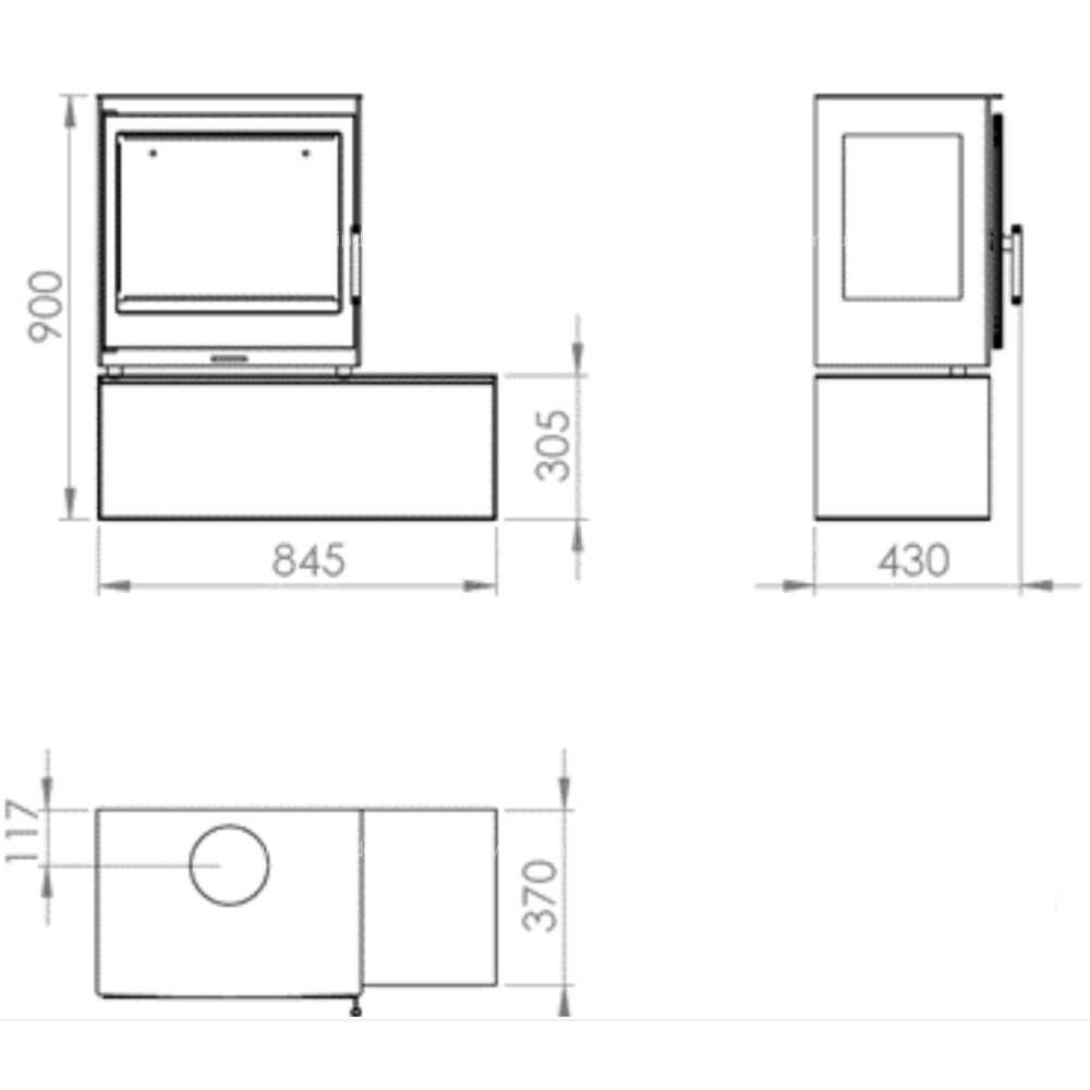 Печь-камин дровяной пристенный с трехсторонним обзором и системой чистого стекла Panadero CHARME 3V Ecodesign