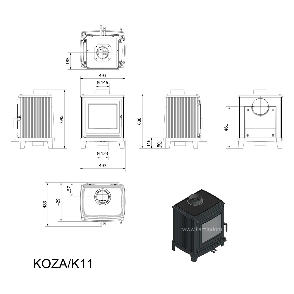Модель Koza K11 будет отличным выбором для тех, кто ищет надежное и эффективное решение для отопления жилых помещений. Ее классический дизайн в сочетании с современными технологиями делает эту печь практичным и эстетичным элементом интерьера.