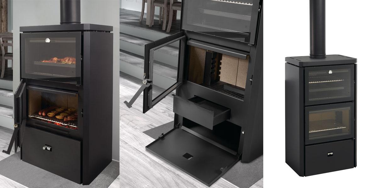 Печь-камин пристенный с духовкой Rocal Hebar E3000V2+T