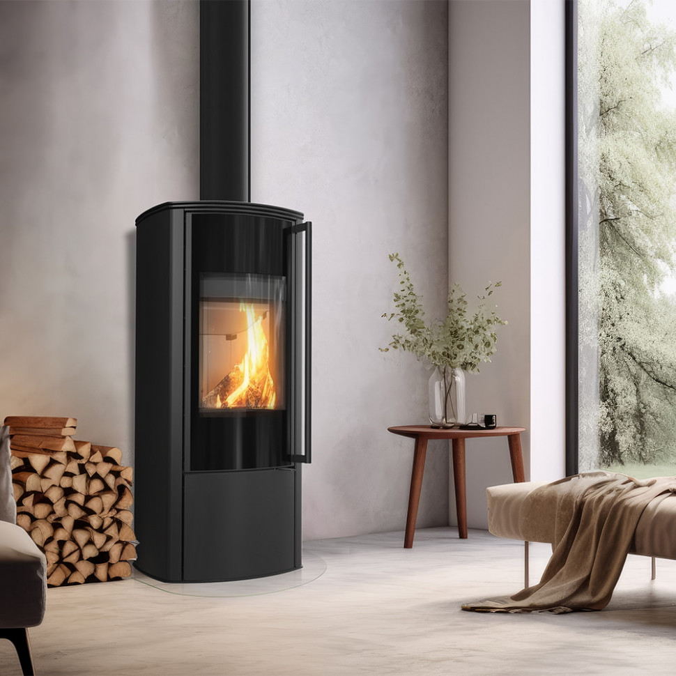 Особенностью данной модели является применение системы вторичного дожига, которая значительно повышает КПД до 80%. Панорамное стекло дверцы обработано по технологии чистого стекла, что позволяет длительное время сохранять прозрачность и наслаждаться видом живого огня. Печь оснащена съемным зольником для удобства обслуживания.