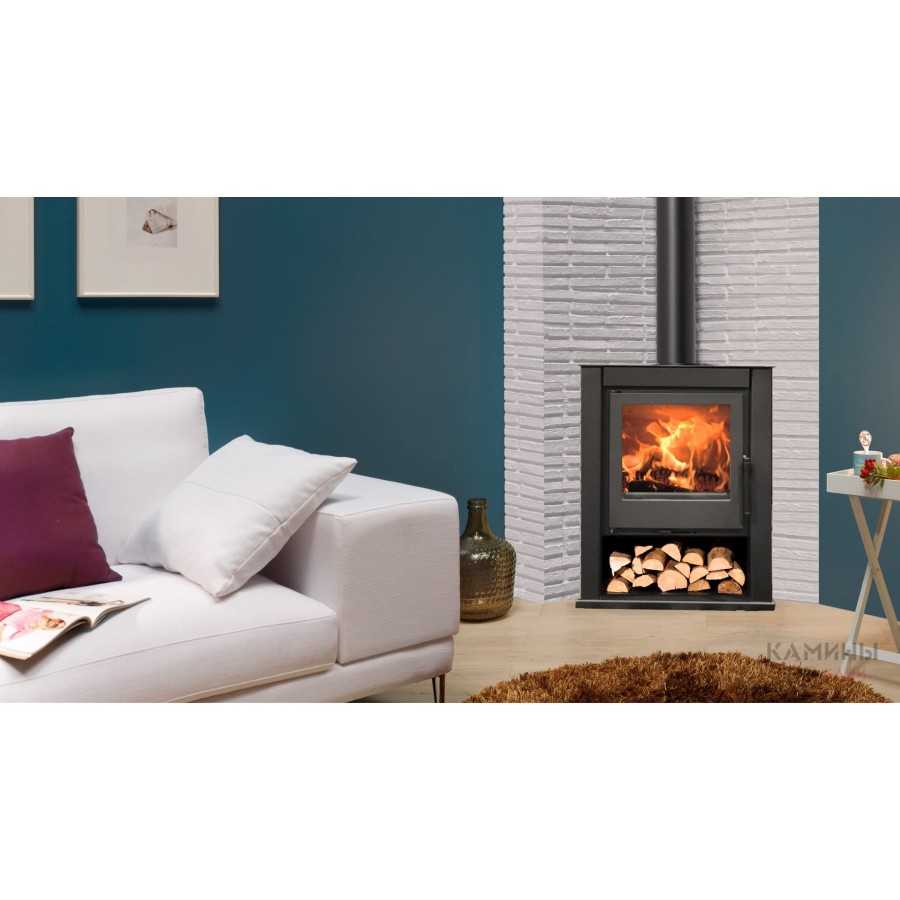 Чугунная дверца с большим термостойким стеклом диагональю 410 мм не только обеспечивает прекрасный обзор пламени, но и отличается долговечностью. Наличие чугунной колосниковой решетки и зольного ящика упрощает обслуживание печи, делая процесс эксплуатации максимально комфортным.