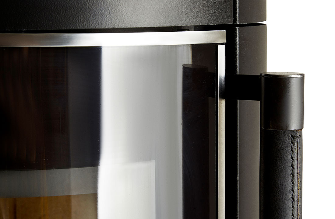Печь-камин высокая черная с кожаной ручкой и хромированной окантовкой Keddy K900