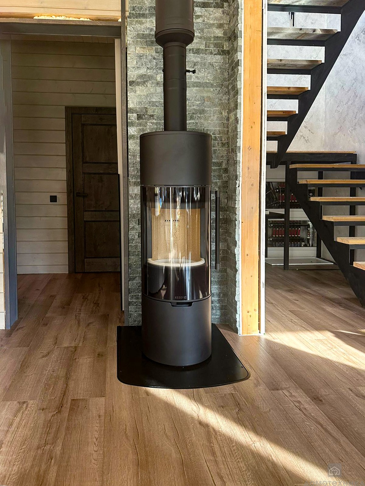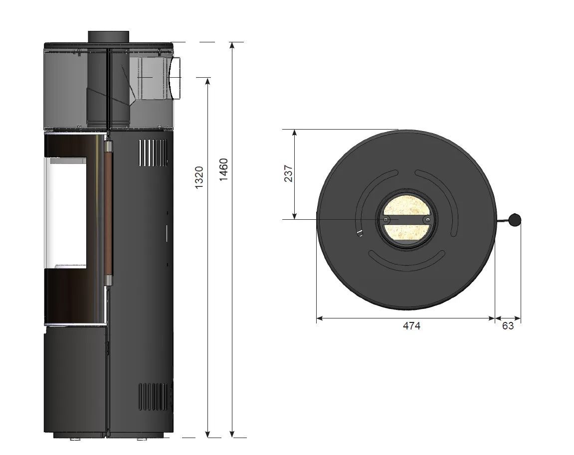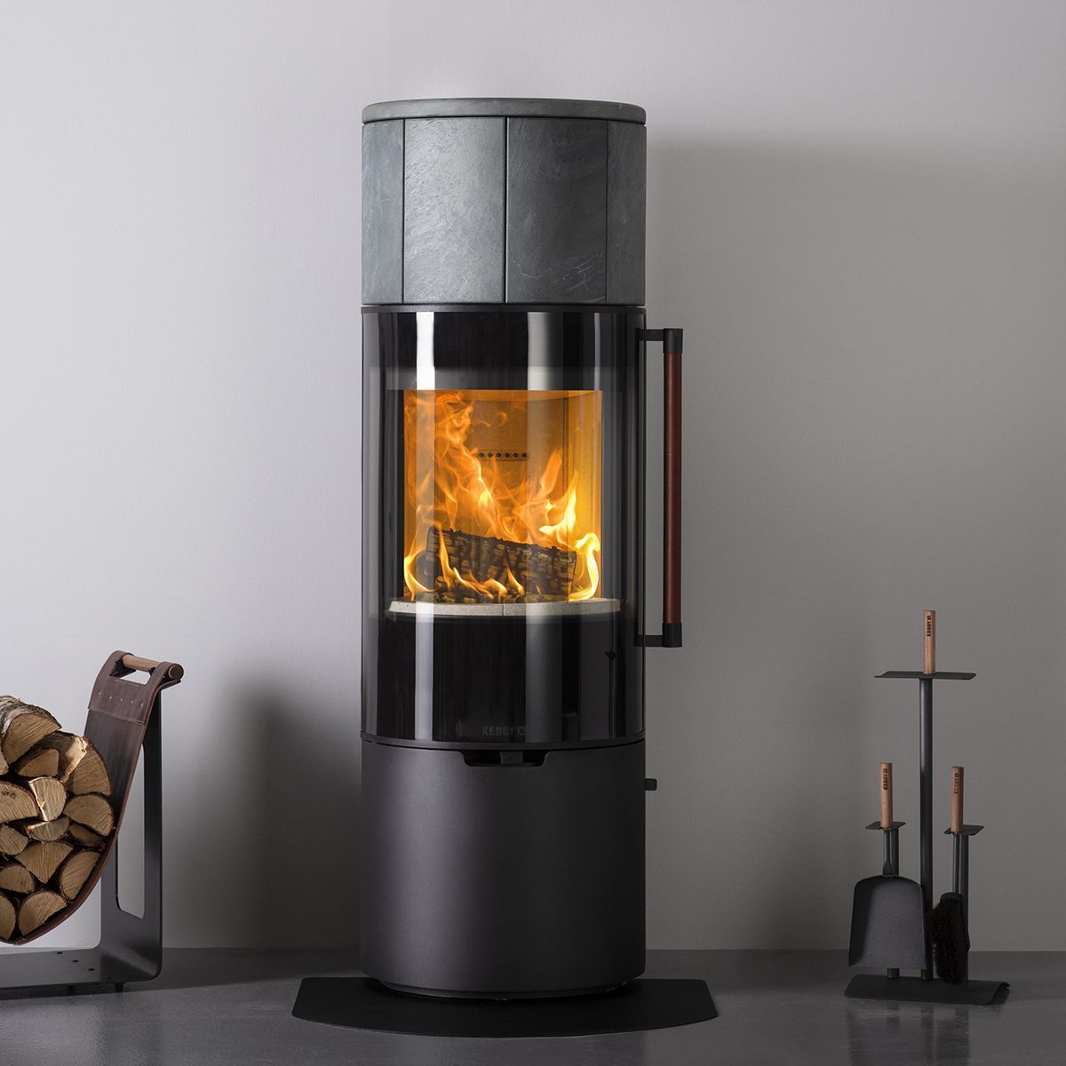 Шведская печь Keddy K900 представляет собой образец инженерного совершенства и дизайнерского мастерства. Черный цилиндрический корпус из высококачественной стали дополнен кожаной ручкой и хромированной окантовкой стекла, создавая неповторимый современный образ.