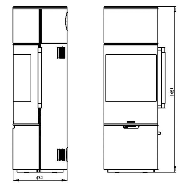 Под топочной дверцей расположена удобная ниша для хранения дров и аксессуаров для розжига. Печь демонстрирует отличные показатели энергоэффективности и соответствует строгим экологическим стандартам. Это надежное и долговечное решение для тех, кто ищет качественный источник тепла с современным дизайном.