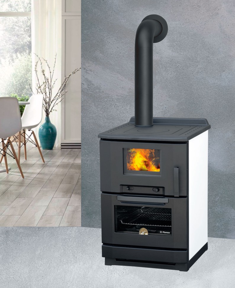 Белая дровяная плита Plamen Calorex 100 представляет собой современное отопительное оборудование с варочными функциями. Эта модель разработана для комфортного использования в частных домах и на дачах, обеспечивая не только тепло, но и кулинарные возможности.