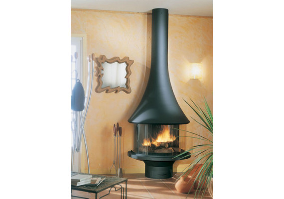 Пристенный камин со стеклом круглой формы и панорамным обзором JC Bordelet Marina 993
