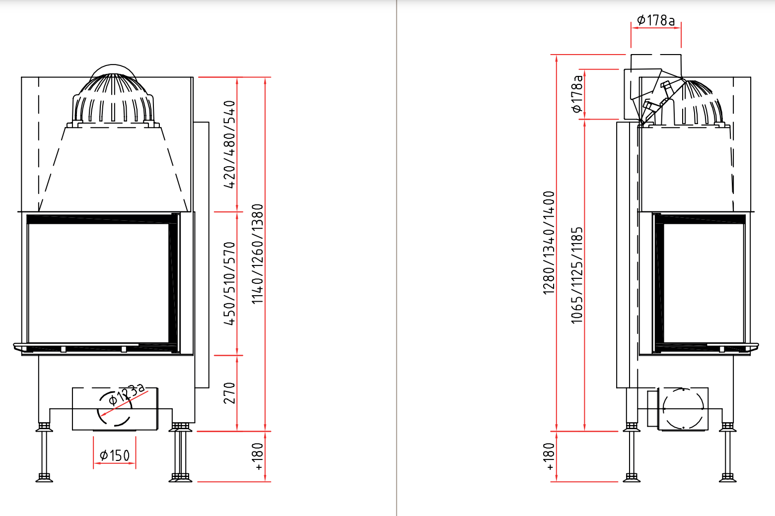 Топка оснащена системой подачи внешнего воздуха, что обеспечивает эффективное горение без использования кислорода из помещения. Регулируемые ножки позволяют легко адаптировать оборудование к особенностям монтажного пространства. Чугунный дымосборник и шамотная футеровка гарантируют долговечность и надежность конструкции.